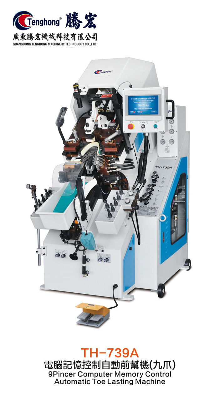 前幫機(jī)的處理的方法是首先在加熱狀態(tài)把噴膠器從繃幫座上拆下來,清除表面上的熱熔膠,取中號(hào)鞋楦的底盤檢測(cè)涂膠器上表面,標(biāo)出接觸不良的部位,并修磨出與鞋楦底盤相同的弧面,還應(yīng)使噴膠器邊緣略小于鞋楦楞邊。同時(shí),把已堵塞進(jìn)噴膠孔或噴膠槽中的焦燒雜質(zhì)清除干凈。前幫機(jī)把修磨合格的噴膠器重新裝到繃幫座上,再調(diào)整輸膠量至最大量,噴膠不均勻的故障即可清除。
